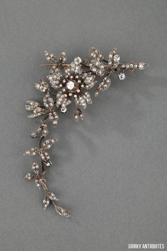Broche ‘Trembleuse’ en or et argent, ornée de diamants de taille ancienne et de taille rose Poids 37g Vers 1890 Ref. A1900