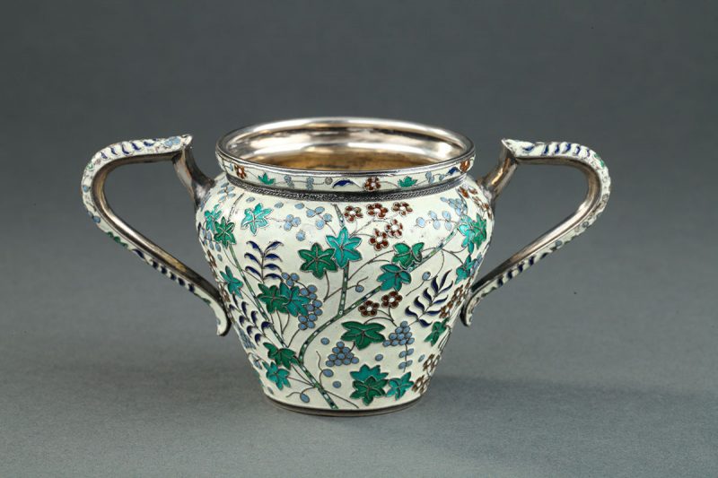 Coupe à deux anses en argent, émail cloisonné. D.YEGEROFF Poids : 117g Moscou Vers 1899 Ref. : A1733